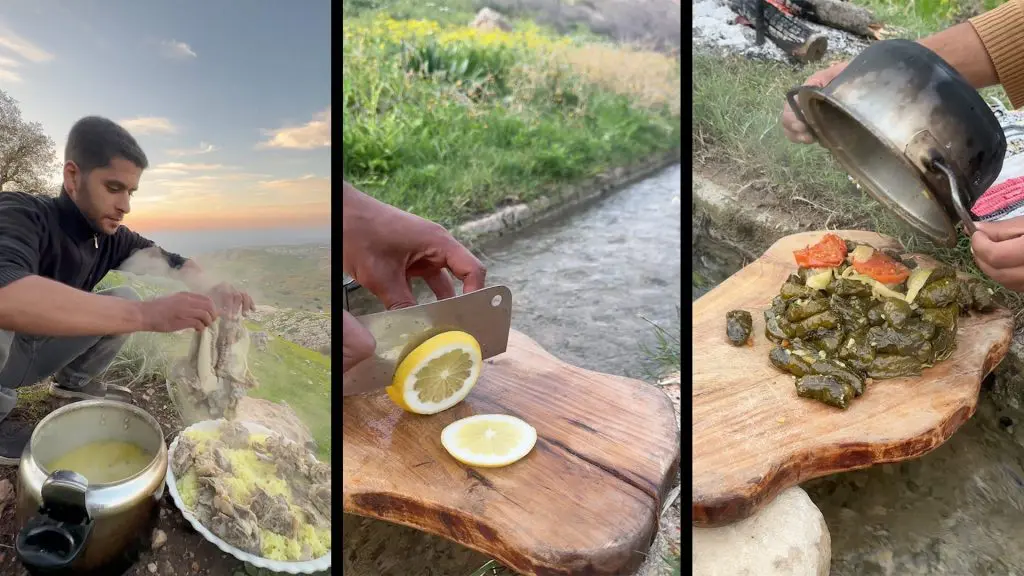 أردني يحضّر المنسف وورق العنب على مجرى نهر بسكين ولوح تقطيع فقط