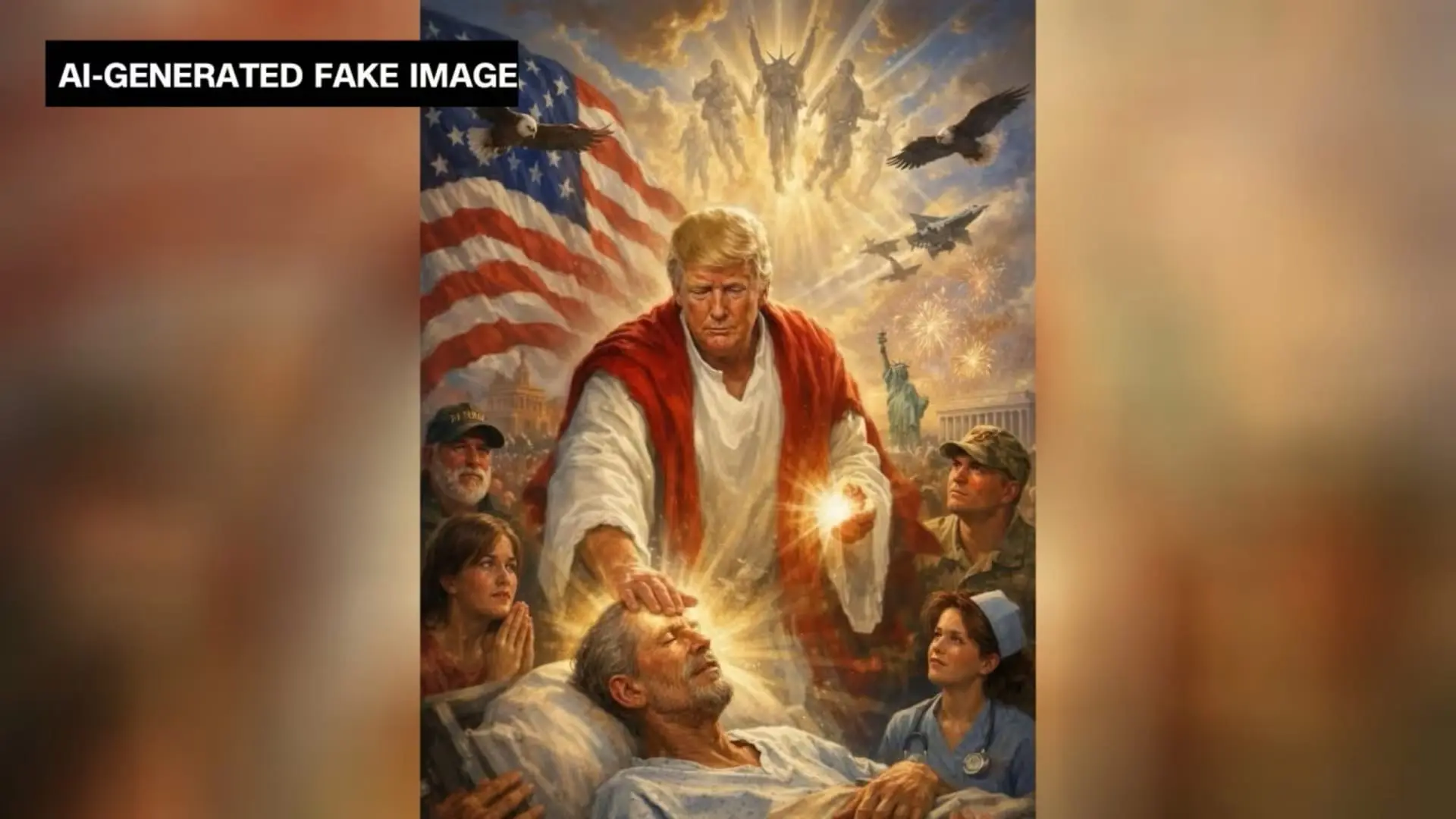 ونُشرت الصورة، التي أظهرت ترامب كشخصية مشابهة للمسيح الذي يشفي المرضى بينما كان محاطًا بالأعلام والنسور الأمريكية، على منصة Truth Social في وقت متأخر من مساء الأحد، بعد وقت قصير من انتقاد الرئيس لبابا الفاتيكان لتعبيره عن اعتراضه على الحرب مع إيران.
