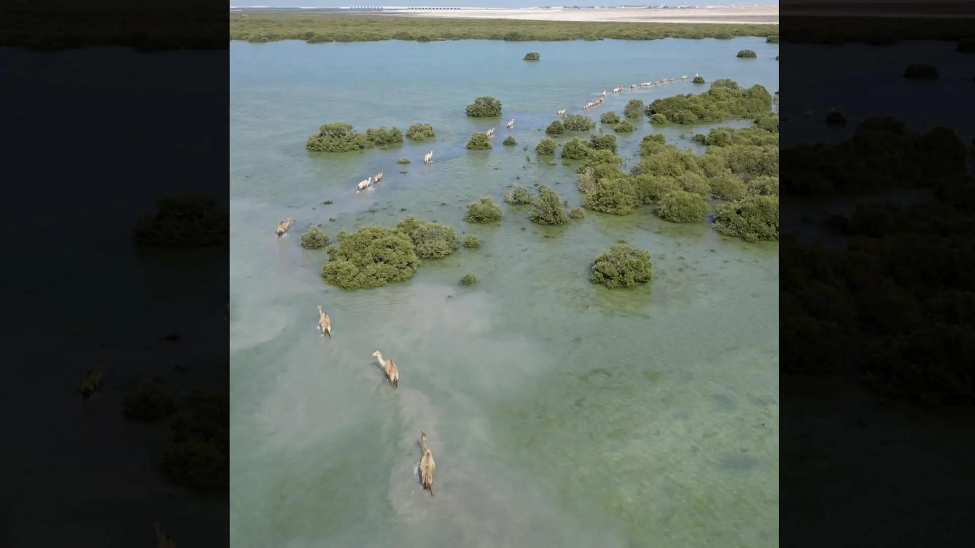 شدّها المشهد وشعرت أنّه يستحق التوثيق. وتُظهر المشاهد الجوية التي وثّقتها مجموعة من الإبل تمشي في المياه، قبل أن تتقدّم لتتجول بين أشجار القرم، أمام خلفية البحر اللامتناهية.