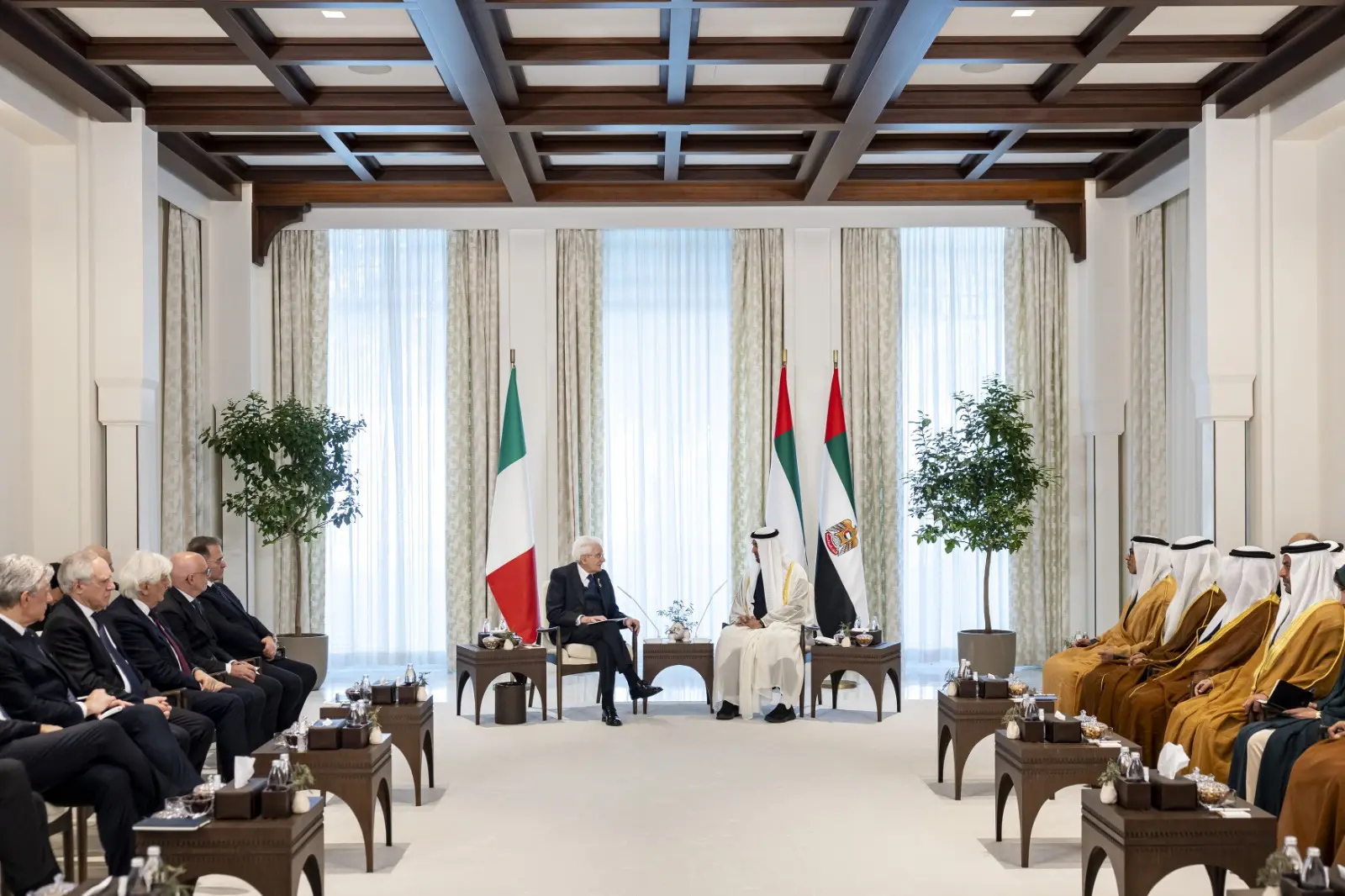 وبحث الرئيسان في “مسار تطوّر علاقات التعاون بين دولة الإمارات وإيطاليا في إطار شراكتهما الإستراتيجية والحرص المتبادل على تحقيق أهدافها بما يعود بالنماء والازدهار على شعبيهما”.