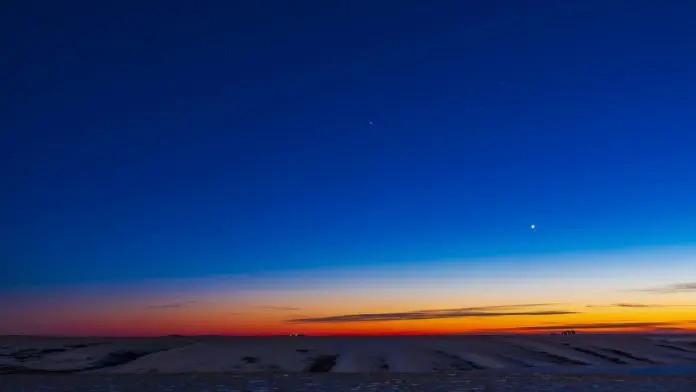 وقالت: “عادةً ما يكون كوكب الزهرة أول ما يظهر”، مضيفةً أنه سيكون ألمع جسم في السماء بعد الشمس والقمر، وسيكون توهّجه أبيض ثابت وساطع عند الأفق الغربي بعد غروب الشمس.