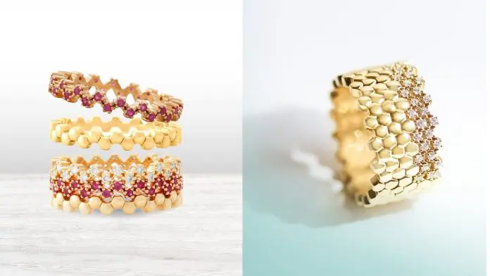 وعن أسلوب العمل بين الوالدة والابنة، أشارت حمدان إلى أن هناك نقاط تشابه في الذوق، إلا أنّ الاختلافات تبقى العنصر الأكثر تكاملاً، واصفة العلاقة بالتكاملية، مستشهدة بإحدى الخواتم من مجموعتما “هارموني”، حيث بدأت والدتها بتصاميم تعتمد على الماس، لتكمل حمدان الفكرة بقطع من الذهب فقط، فتداخلت الرؤيتان التصميمتان لتُكملا بعضهما، في ترجمة بصرية واضحة لفكرة الانسجام.