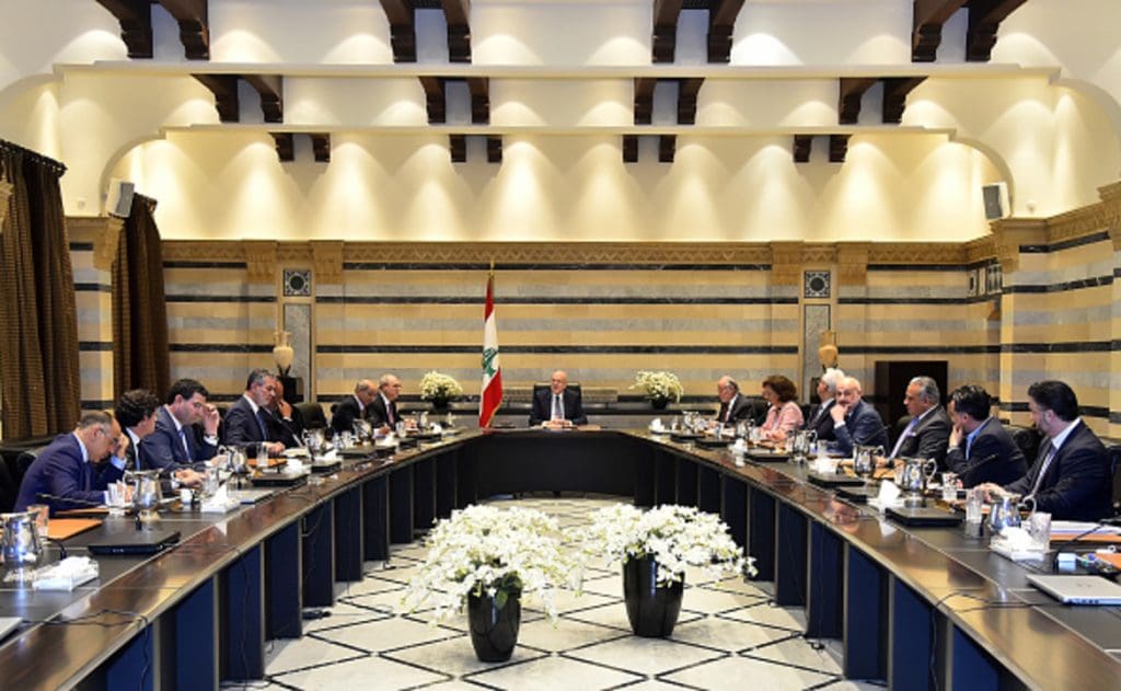BEIRUT, LEBANON - JUNE 13: (----EDITORIAL USE ONLY - MANDATORY CREDIT - 'LEBANESE GOVERNMENT PRESS OFFICE / HANDOUT' - NO MARKETING NO ADVERTISING CAMPAIGNS - DISTRIBUTED AS A SERVICE TO CLIENTS----) Lebanese Prime Minister Najib Mikati chairs the cabinet meeting at the government palace in Beirut, Lebanon on June 13, 2023. Lebanese Prime Minister announces that they will not be able to pay civil servants salaries in June. (Photo by Lebanese Government Press Office / Handout/Anadolu Agency via Getty Images)