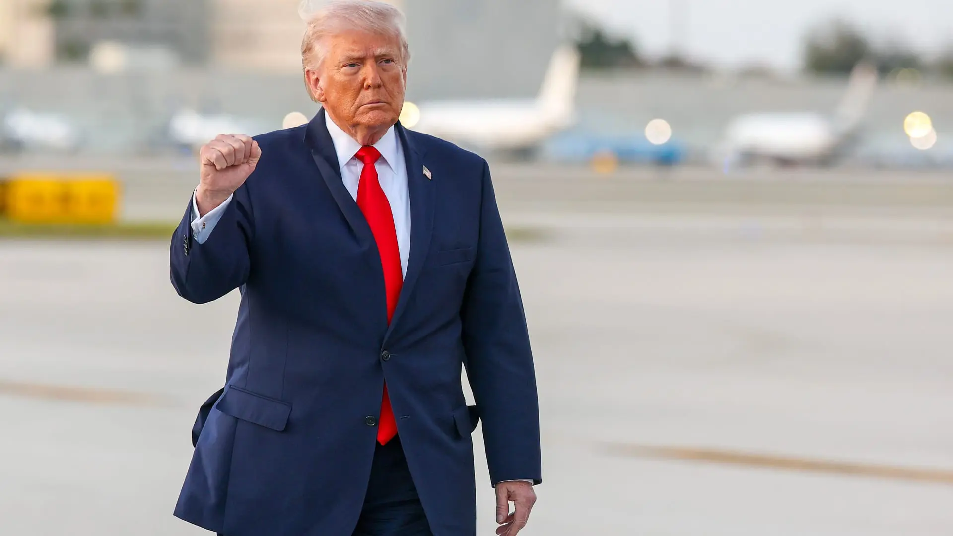 غالبًا ما ترافق ربطة العنق الحمراء إطلالات الرئيس الأمريكي دونالد ترامب. Credit: Photo by Matt McClain/Getty Images