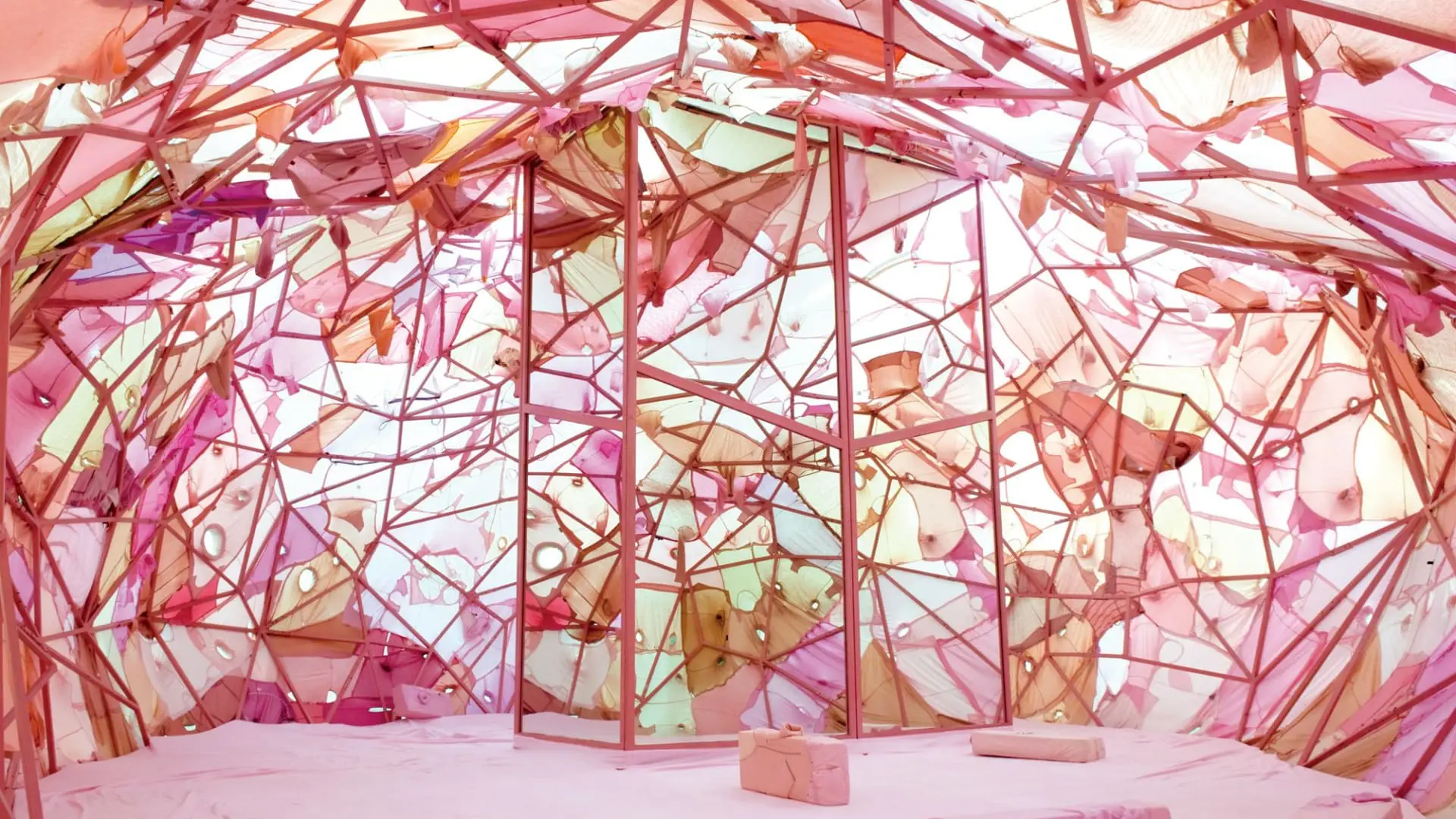 دبي، الإمارات العربية المتحدة (CNN) — في ظهيرة ممطرة بلندن، تجلس فنانة النحت الصينية “يين شيوزهن” تحت مظلة من الملابس الحمراء والوردية والبنفسجية والبرتقالية الممتدة على إطار من الصلب. من الداخل، توفّر القبة المفروشة بالسجاد والمزودة بالوسائد ملاذًا دافئًا وحيويًا، أما من الخارج، فيبدو الهيكل الذي تنتصب بجواره مرآة كبيرة، على هيئة قلب بشري.