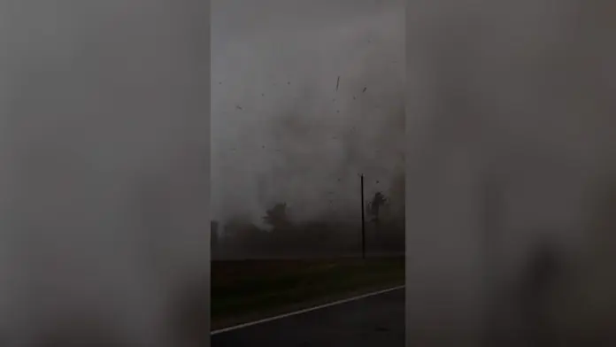وثّق مطارد العواصف آرون ريغسبي لحظات مرعبة، عندما ضرب إعصار أحد المنازل في مدينة روكتون بولاية إلينوي الأمريكية، حيث أظهرت اللقطات حطامًا يتطاير في الهواء وصيحات تحذير مع اقتراب الإعصار بشكل خطير.