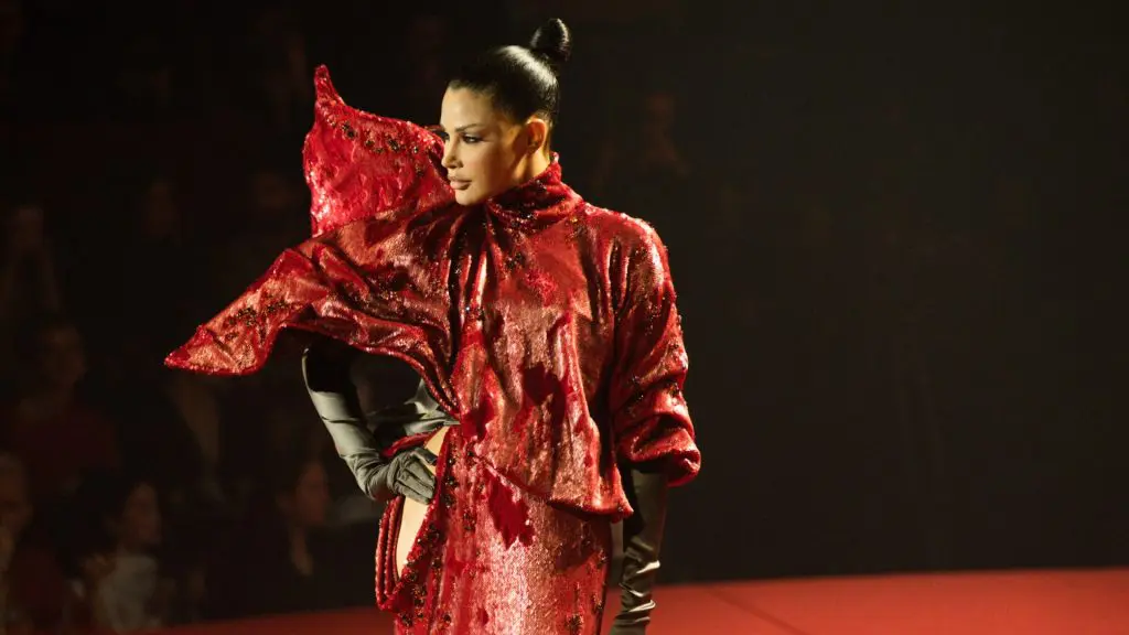 واختتم العرض، الذي أقيم في سيرك “دو إيفر بوجلّيون” في باريس، بمشهد مذهل، حيث حلّقت فنانة السيرك الفرنسية ناتاليا بوغليون في الهواء أمام الجمهور، مرتدية فستانًا مرصعًا بالماس، بحسب ما وصفته الصفحة الرسمية للمصمم الفرنسي على “إنستغرام”.