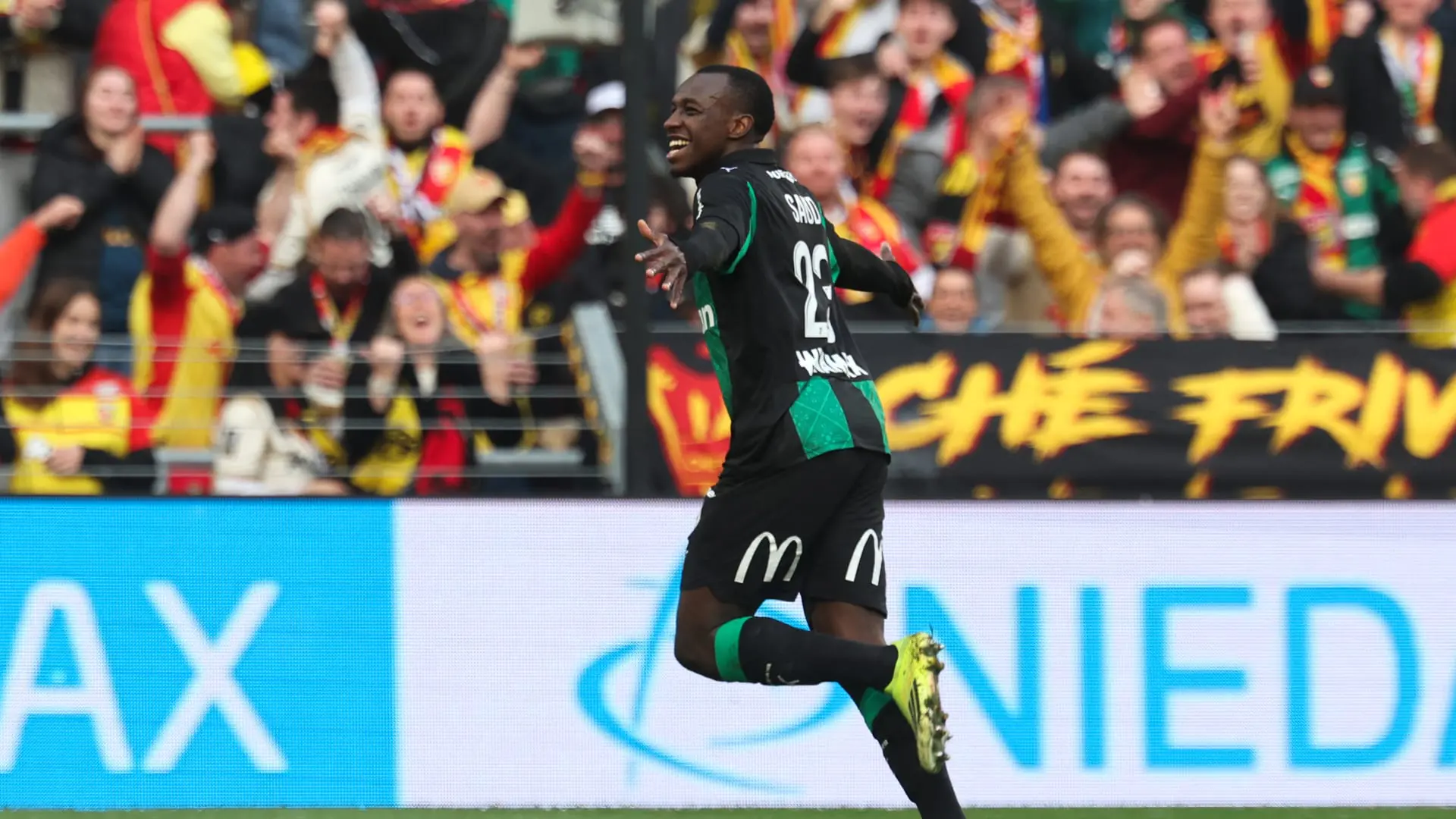 هذا ما فعله جمهور لانس مع سعود عبدالحميد بعد تسجيله أول أهدافه بالدوري الفرنسي